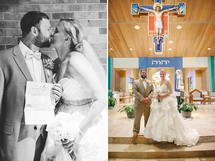 The girls started off the day getting ready at Lauren’s parents’ house, which has a beautifully-landscaped backyard and pool — perfect for our pre-ceremony bridal portraits. St. Catherine of Siena, their church and the ceremony location, was just around the corner. After their ceremony, the wedding party boarded a party bus, to travel to the reception in style. And what a reception it was, taking over the gorgeous Cityscape Events at the City Centre in downtown Kalamazoo. Following a cocktail hour, the night kicked off with toasts, dancing, live music, and a special song written and performed by Brad’s father. Lauren & Brad certainly did it up right!