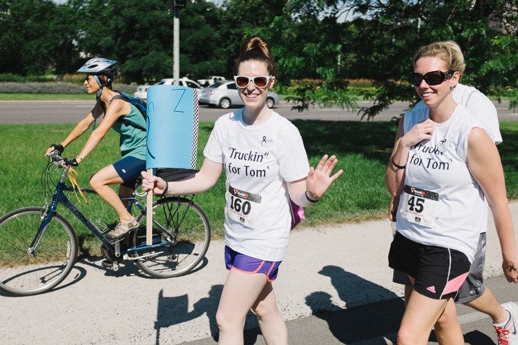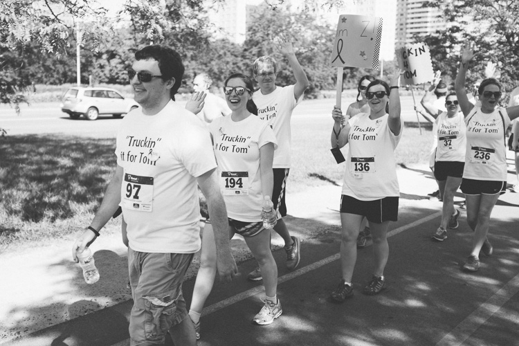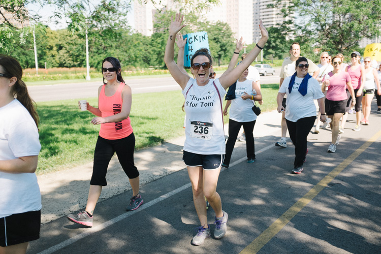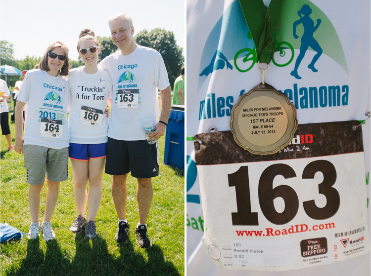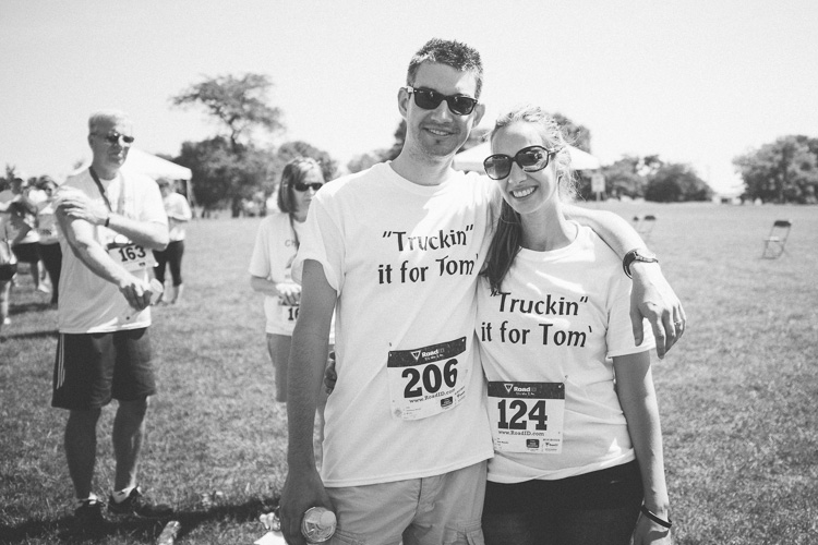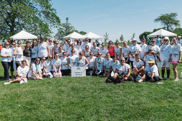 Part of that effort was to assemble a team, Truckin’ it for Tom, to take part in the 2013 Miles for Melanoma Teb’s Troops 5K Run/Walk at Montrose Harbor. Over the course of a few weeks, the team grew to 82 members, and raised nearly $7,000 to help fund melanoma research. Despite losing Tom that very week, everyone knew how crucial the walk was; one donation, one drug trial, one checkup, could make the difference for the next person.