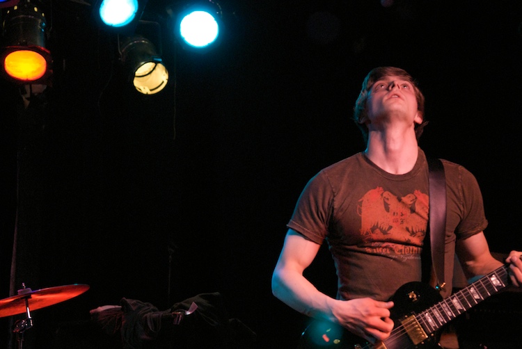 Nate Winter, from Children's Masterpiece Theatre, takes a turn on guitar during the band's 4/4/08 show at Beat Kitchen, in Chicago, IL.