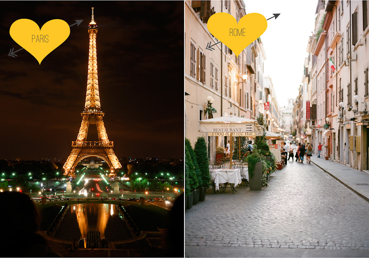 Of course, what’s a trip without photos?!?! We decided to set the city names (using our standard Ostrich Sans font) in a small yellow heart icon, and float that on top of a photo from each of the destinations. Once all of the 23 cities were printed, we put them into 5x7” frames, trying to match the place with the frame. Good times, and I really think that everything came together nicely!