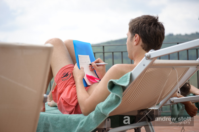 Thursday morning. Wedding day. Most brides and grooms would be nervous, but not Alyssa & Collin. Then again, lounging at the pool in Tuscany can tend to have that effect.