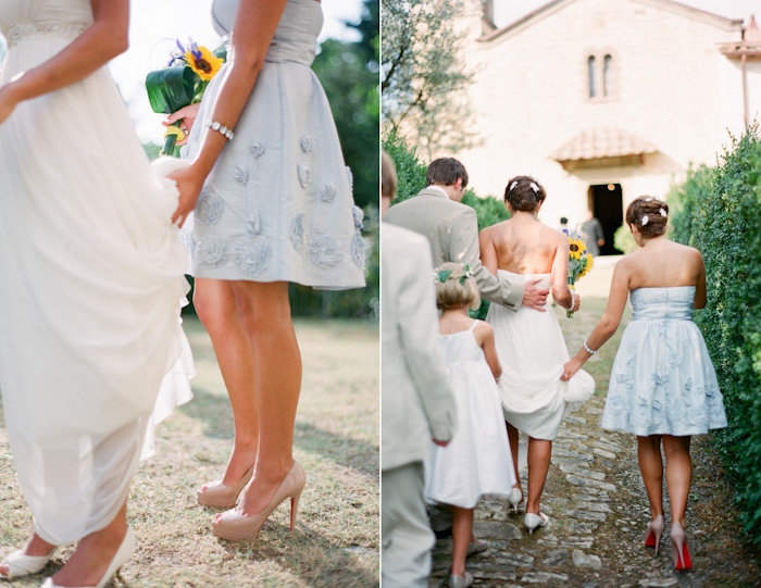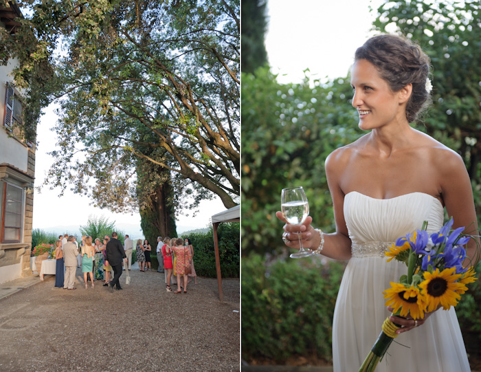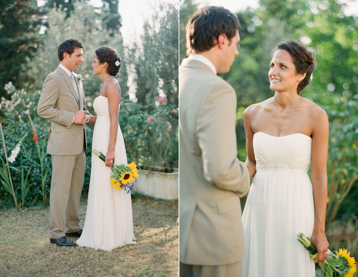Their ceremony took place at the small chapel on the grounds of Castello Vicchiomaggio. Despite the heat and a sudden downpour, things went perfectly! In fact, as soon as the ceremony was over, the rain stopped, the clouds parted, and the sun started shining again. If that's not a once-in-a-lifetime moment, I don't know what is!